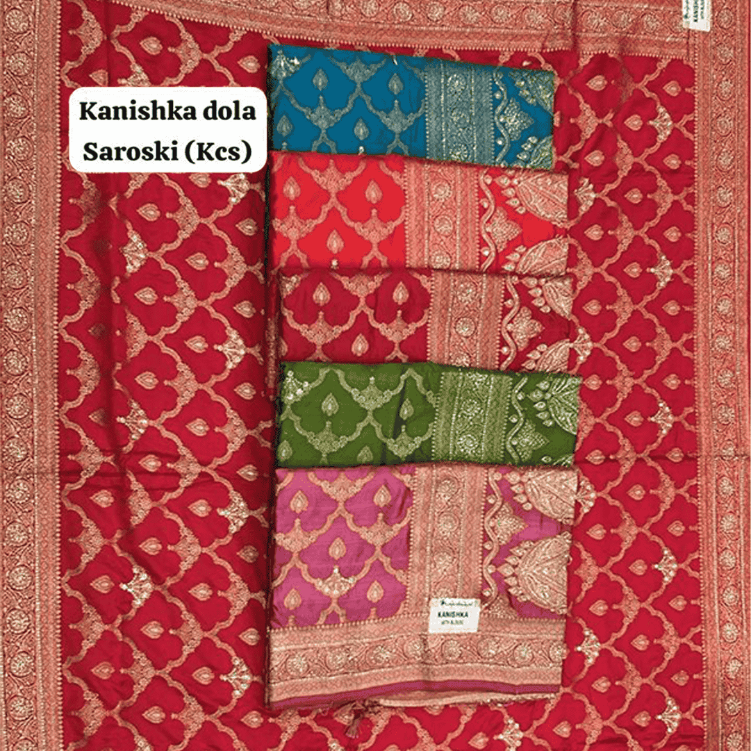 Add a royal touch to your ethnic wardrobe with the Kanishka Dola Saroski (KCS) saree collection — a celebration of intricate tradition, luxurious texture, and refined sparkle. Every saree in this exquisite line-up is designed to make you feel regal, graceful, and radiant.